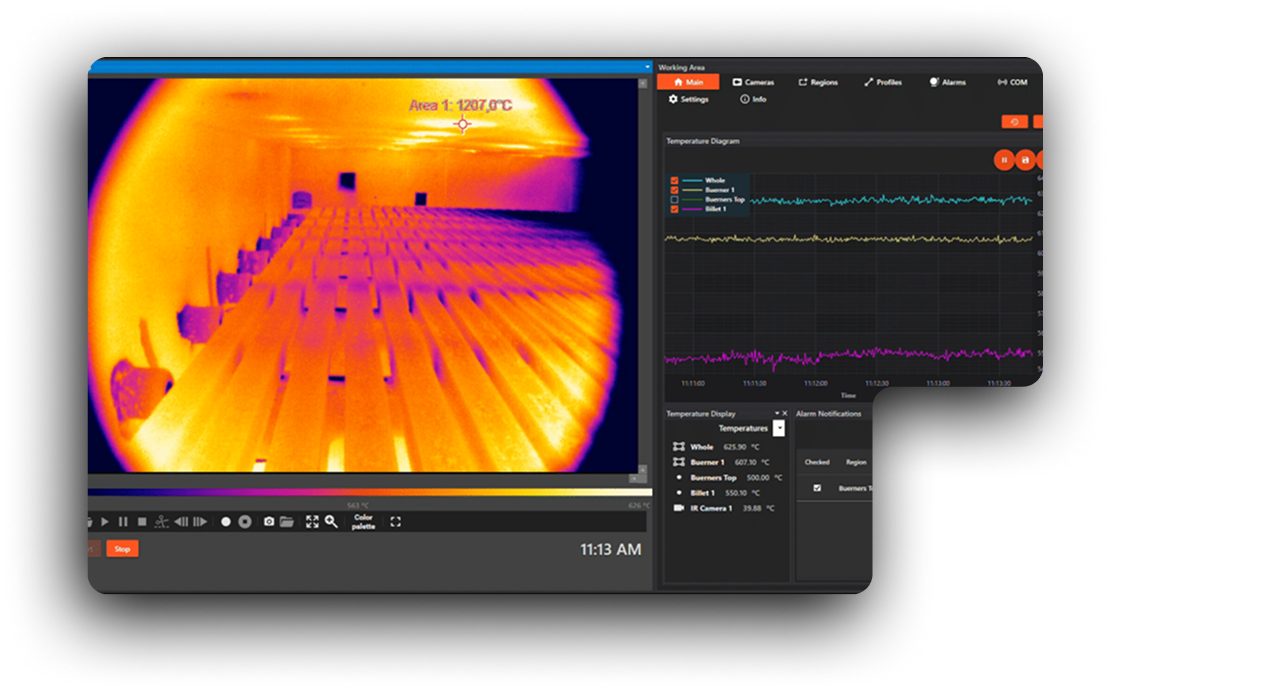 ProTIR® permite la monitorización con alta precisión de la temperatura en el interior de hornos, enfriadores, incineradores y calderas.